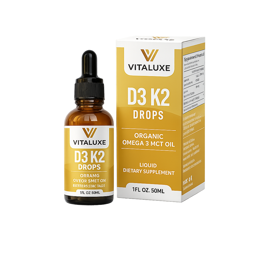 Vitaluxe D3K2 Gold Drops delivers premium daily nutritional support using a clean, high-quality liquid formula designed for optimal absorption. Combining Vitamin D3, Vitamin K2, and MCT oil, this advanced formula helps support bone strength, immune health, and cardiovascular wellness as part of your daily routine.